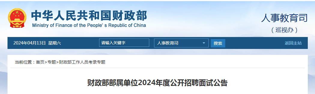 财政部部属单位2024年度公开招聘面试公告